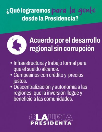 - Acuerdo por el desarrollo regional sin corrupción: hacia una Colombia federal.